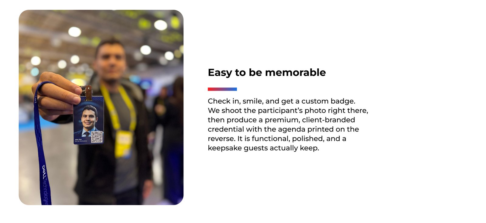 Imagine your event badge doubling as a personalized gift. One piece that handles access, branding, and a take home moment your guests will love. Functional, collectible, and totally on brand.