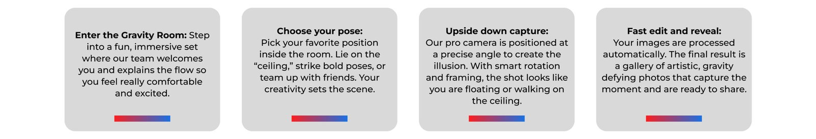 Turn your venue into a zero-gravity playground. Gravity Room uses smart set design and perspective tricks to craft impossible shots, from space-float vibes to upside-down strolls. Safe, spectacular, and built for crowds, it delivers the kind of content people line up for and talk about long after the event.
